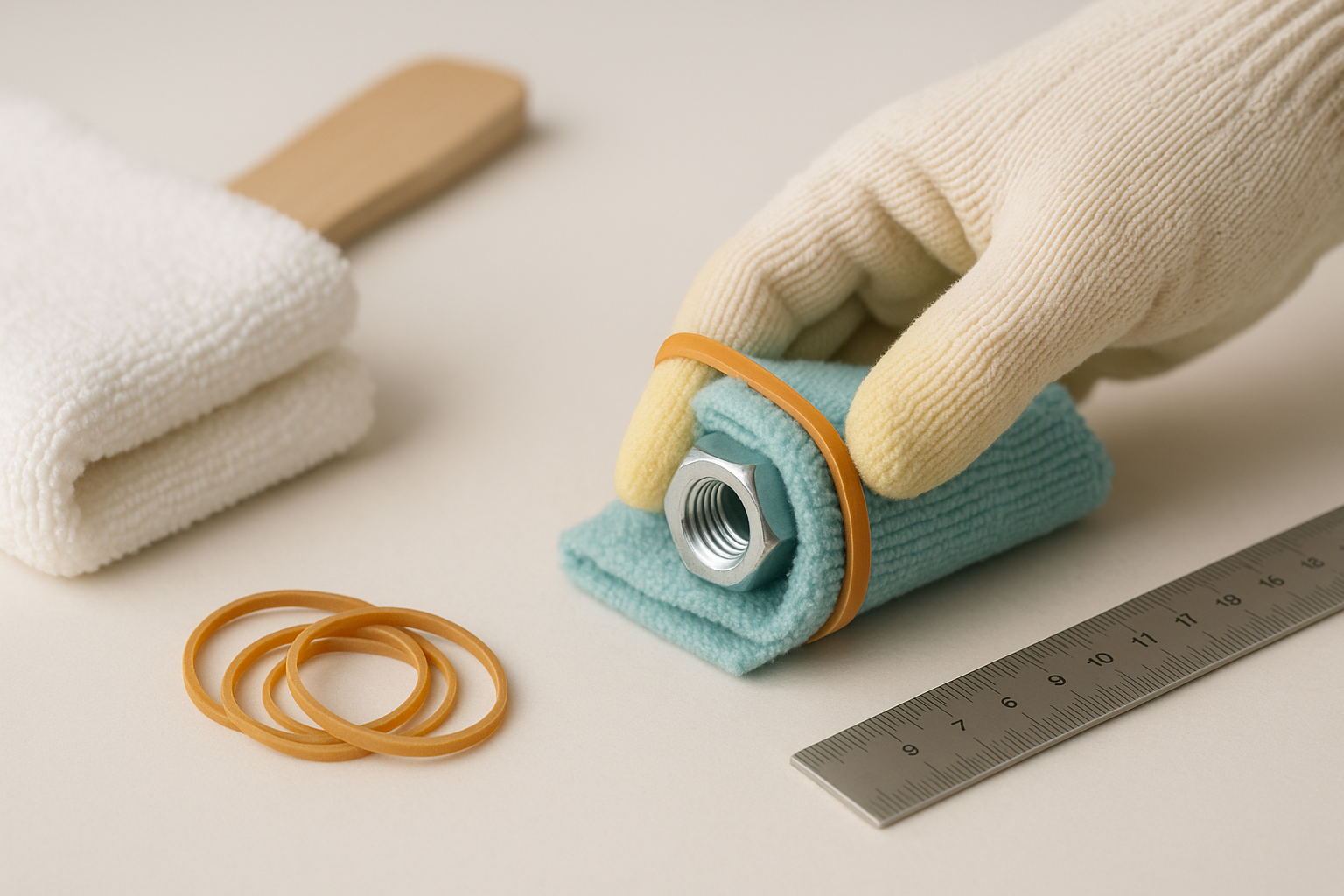 • 輪ゴムやゴム手袋の掌部分:薄いゴムを一枚挟むと摩擦が上がり、指でつまみやすくなることがあります。
