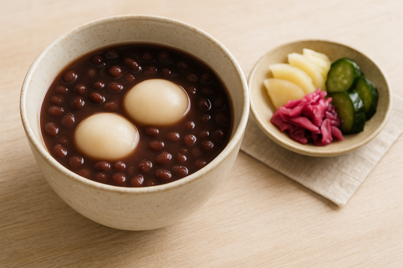 - 白玉入りぜんざい+きゅうりや大根の浅漬け:口当たりが柔らかく、食後でも重く感じにくい組み合わせです。