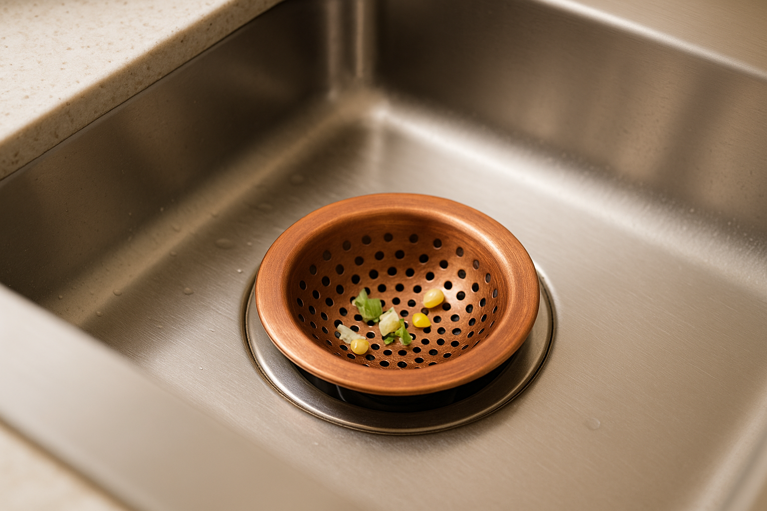 銅製ゴミ受けとは、キッチンシンクや洗面台、浴室の排水口に設置するゴミ受け部分が銅でできている製品のことです。一般的なステンレスやプラスチック製と比べて、見た目や使い心地が大きく変わります。