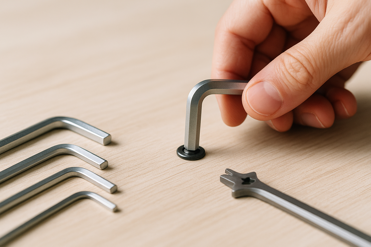- 2. 正しいサイズの六角レンチを選ぶ:差し込んだときにガタつきがないサイズを選びます。少しでも隙間を感じたら、一回り大きいサイズを試します。