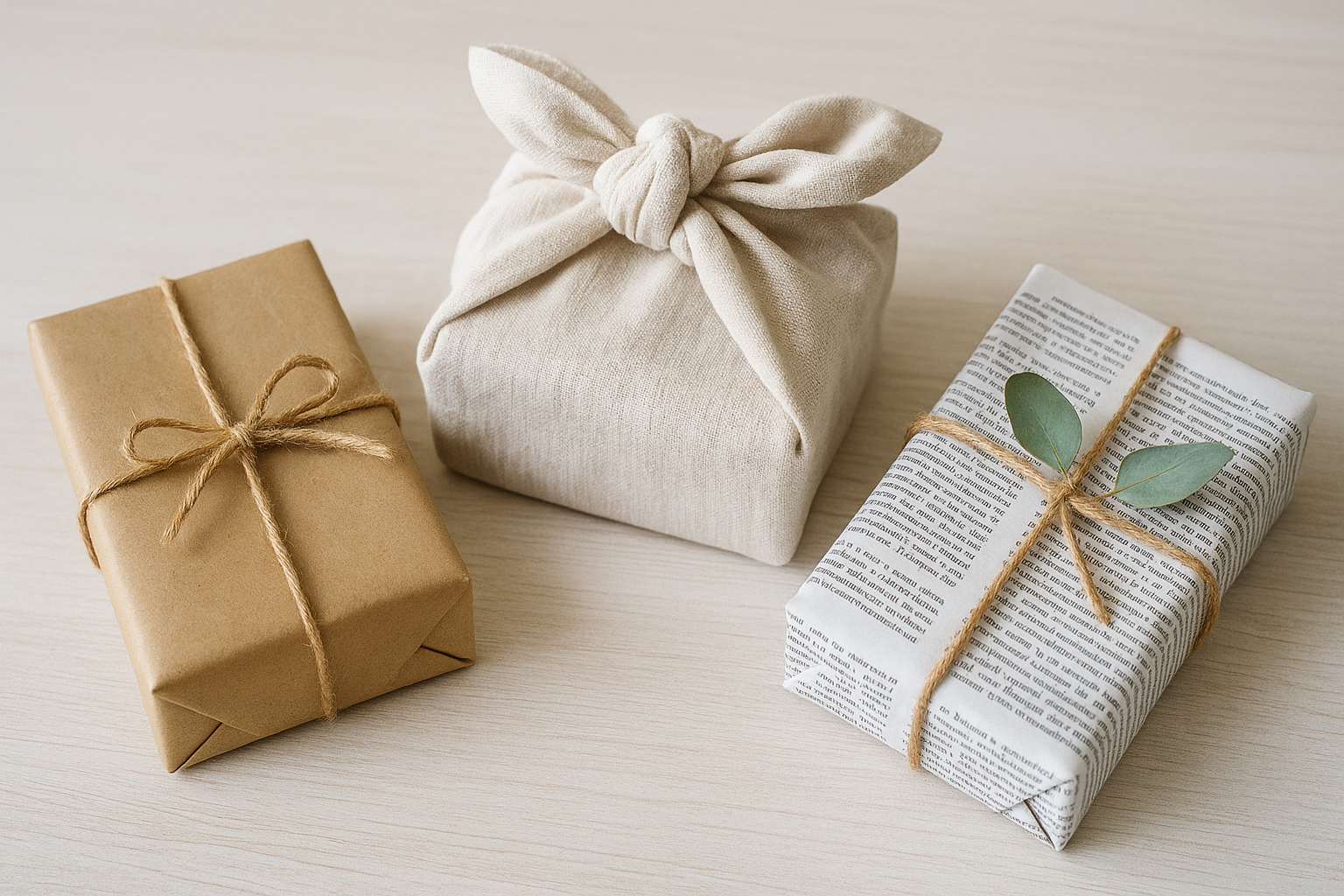 基本の包み方を押さえたら、身近な素材を活かしたおしゃれアレンジにも挑戦してみましょう。布・新聞紙・自然素材など、ラッピング袋よりも個性的で記憶に残る仕上がりになります。ここでは、実際に家庭や職場で手に入りやすい素材に絞って紹介します。